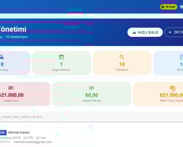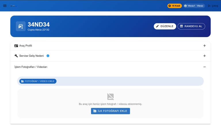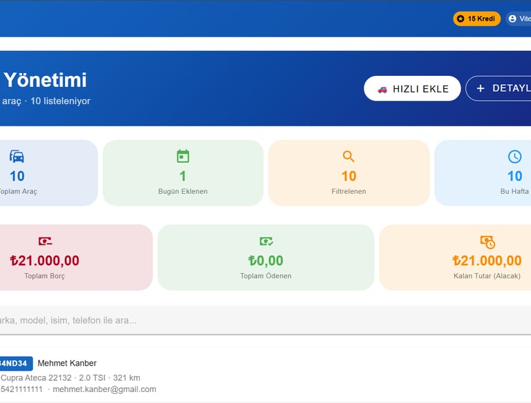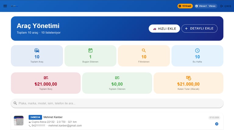 Tüm müşteri ve araç işlem takip,bakım geçmişi işlemlerini gerçekleştir