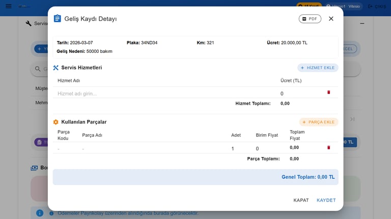 Servis sürecinizin her adımı burada kayıt altında.Detaylı incelemek için resme tıklayın ve sağa,sola kaydırın