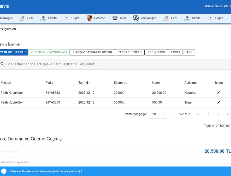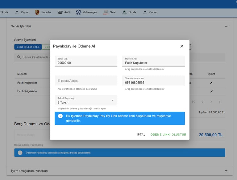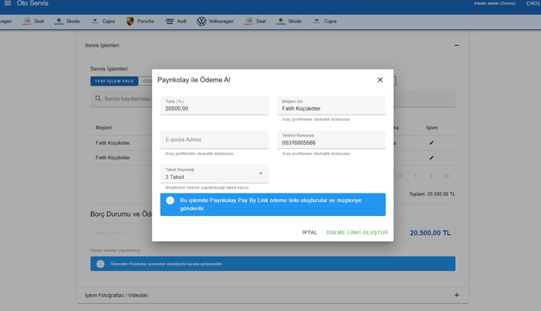 Servis Yönetimi + Sanal Pos
