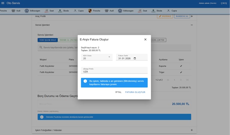 Servis Yönetimi + Sanal Pos + E-Fatura